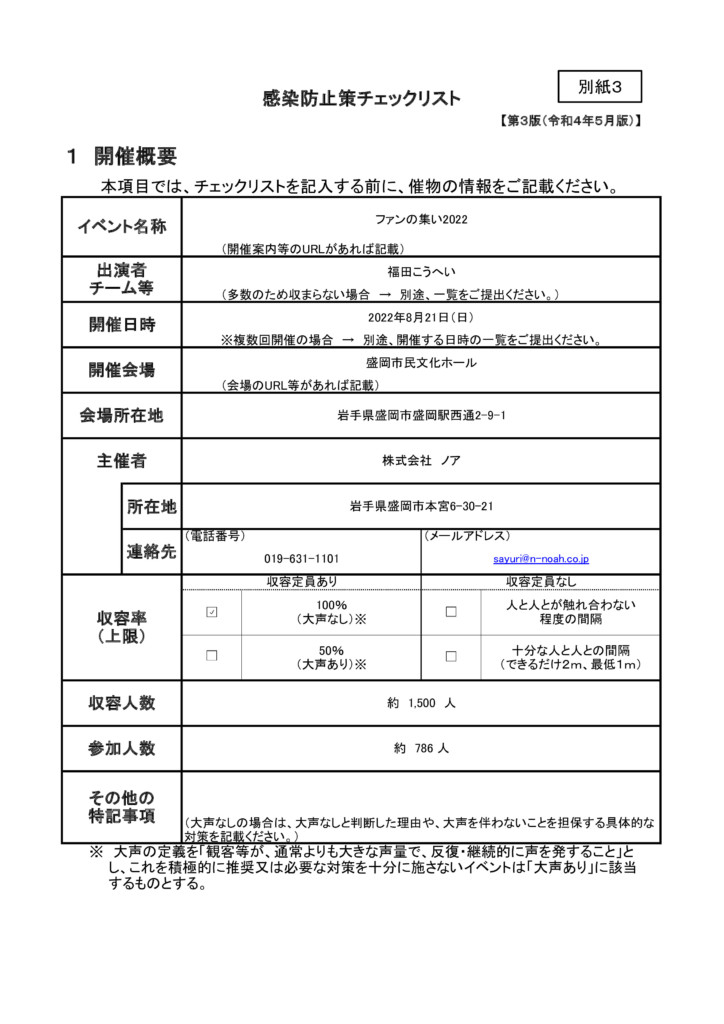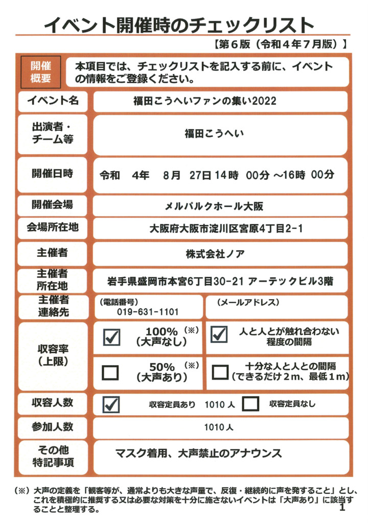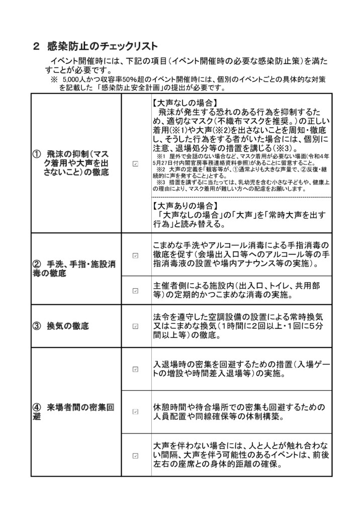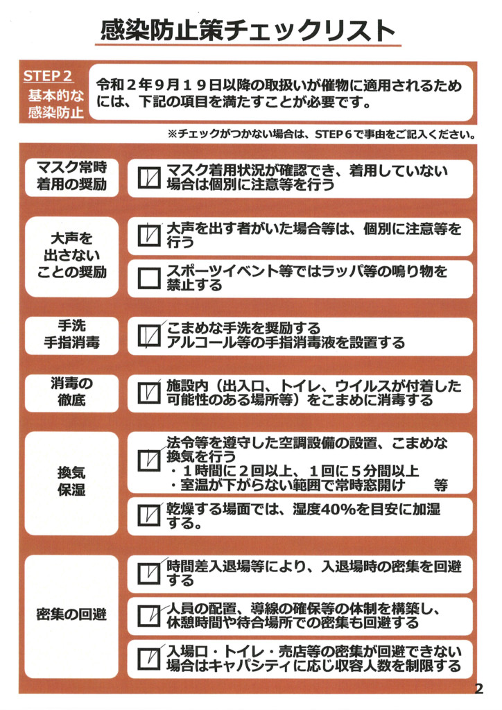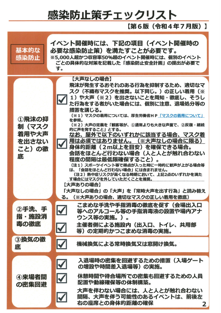 感染対策チェックリスト(ファンの集い)